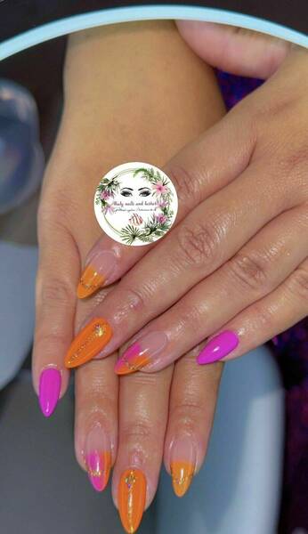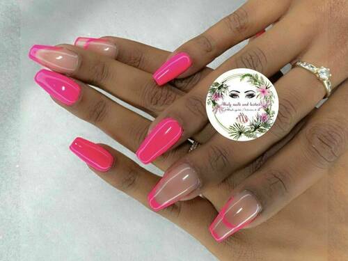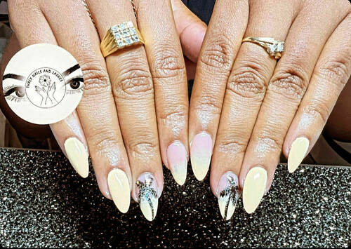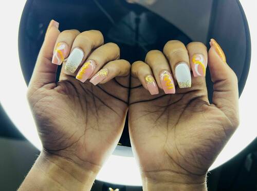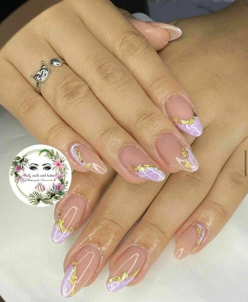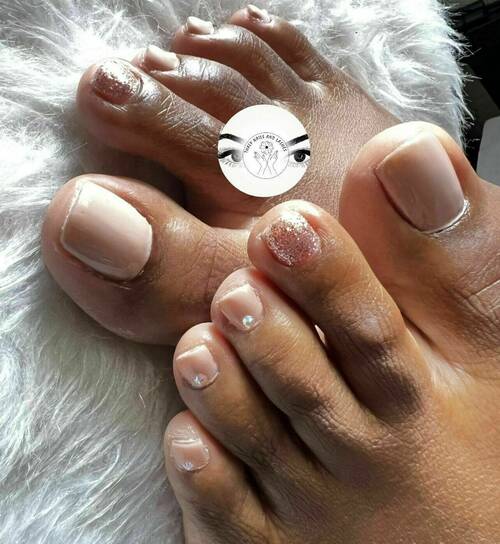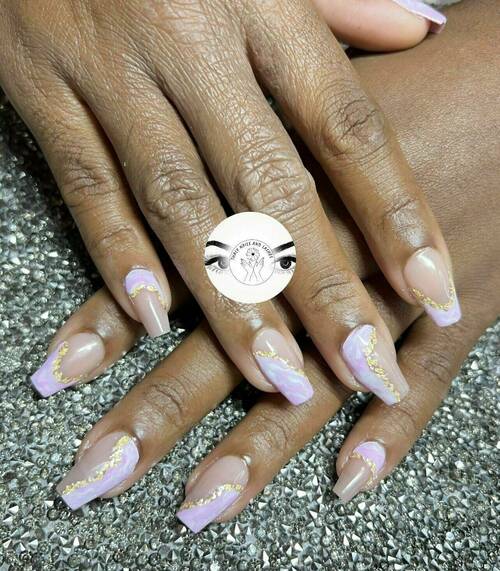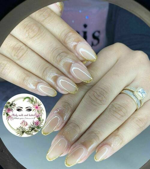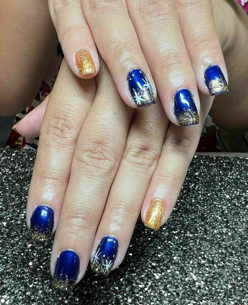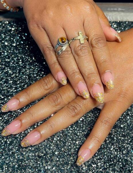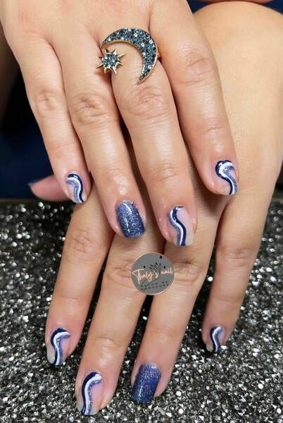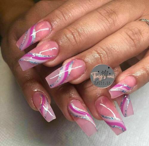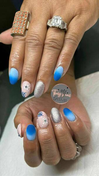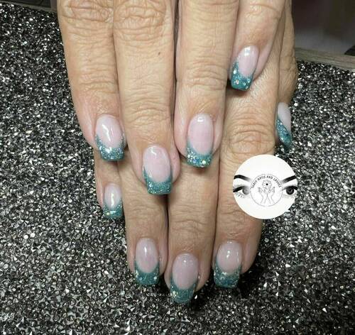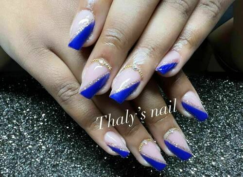 Pose capsules américaines forme ballerine déco nail art french bleu et pailletée babyboomer
