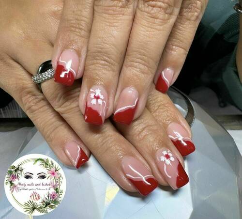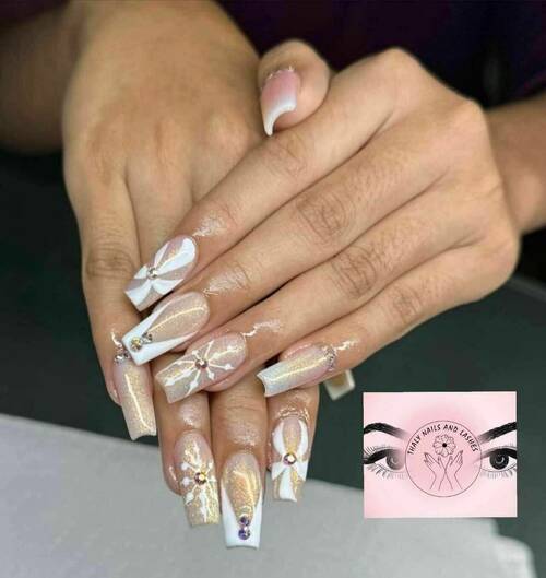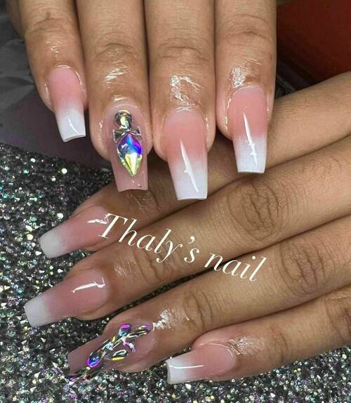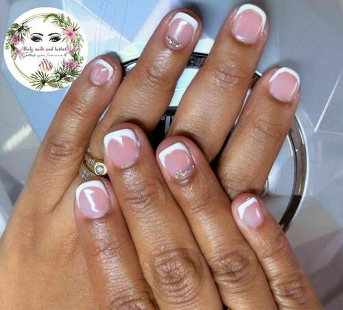 Pose capsules américaines déco french nail art fleur et strass